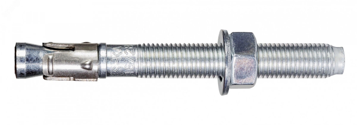S-KA - клиновой анкер с регулируемым моментом затяжки предназначен для использования в сжатом и растянутом бетоне, также его можно устанавливать в плотных основаниях, таких как армированный/неармированный бетон, полнотелый глиняный кирпич, натуральный камень. Анкер поставляется в собранном виде и готов к сквозному монтажу. Клиновые анкеры S-KA имеют оцинкованное покрытие и могут использоваться в сухих помещениях. Особенности и преимущества: 1. Анкер с контролируемым моментом затяжки для предустановки, сквозного и дистанционного монтажа. 2. При затягивании распорная гильза расширяется, создавая фрикционный зажим со стенками отверстия. 3. Размер анкера и максимальная толщина крепления маркированы на анкере. 4. Использование установочного инструмента делает монтаж S-KA более быстрым и безопасным. 5. Оцинкованная версия S-KA подходит для сухих помещений и временных креплений на улице.
