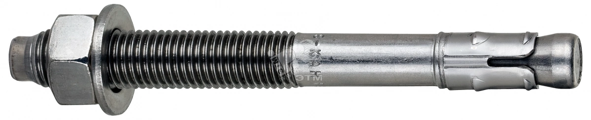 Во время закручивания гайки клиновой элемент надежно фиксирует анкер-шпильку в отверстии за счет сил трения. Оцинкованная анкерная шпилька выдерживает высокие нагрузки на вырыв и срез.