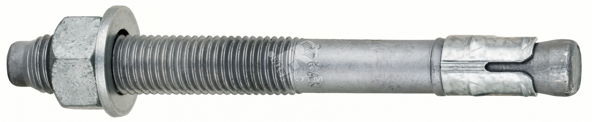 Во время закручивания гайки клиновой элемент надежно фиксирует анкер-шпильку в отверстии за счет сил трения. Оцинкованная анкерная шпилька выдерживает высокие нагрузки на вырыв и срез.