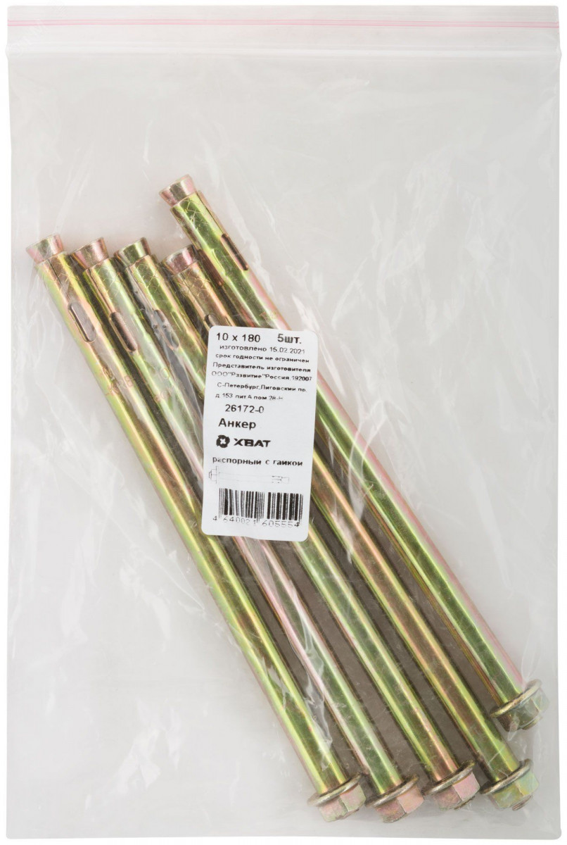 Предназначен для монтажа различных элементов (стальные конструкции, ограждения, барьеры и проч.) в основания из полнотелых материалов. Состоит из втулки, шпильки с конусом на конце и гайки-прокладки.