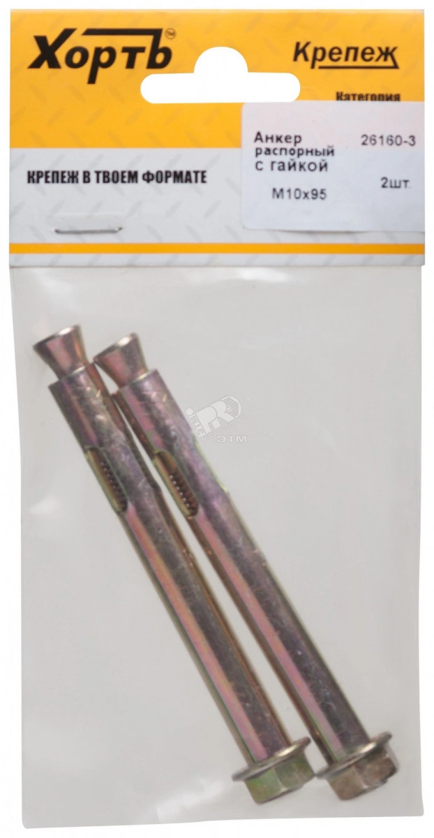 Предназначен для монтажа различных элементов (стальные конструкции, ограждения, барьеры и проч.) в основания из полнотелых материалов. Состоит из втулки, шпильки с конусом на конце и гайки-прокладки.