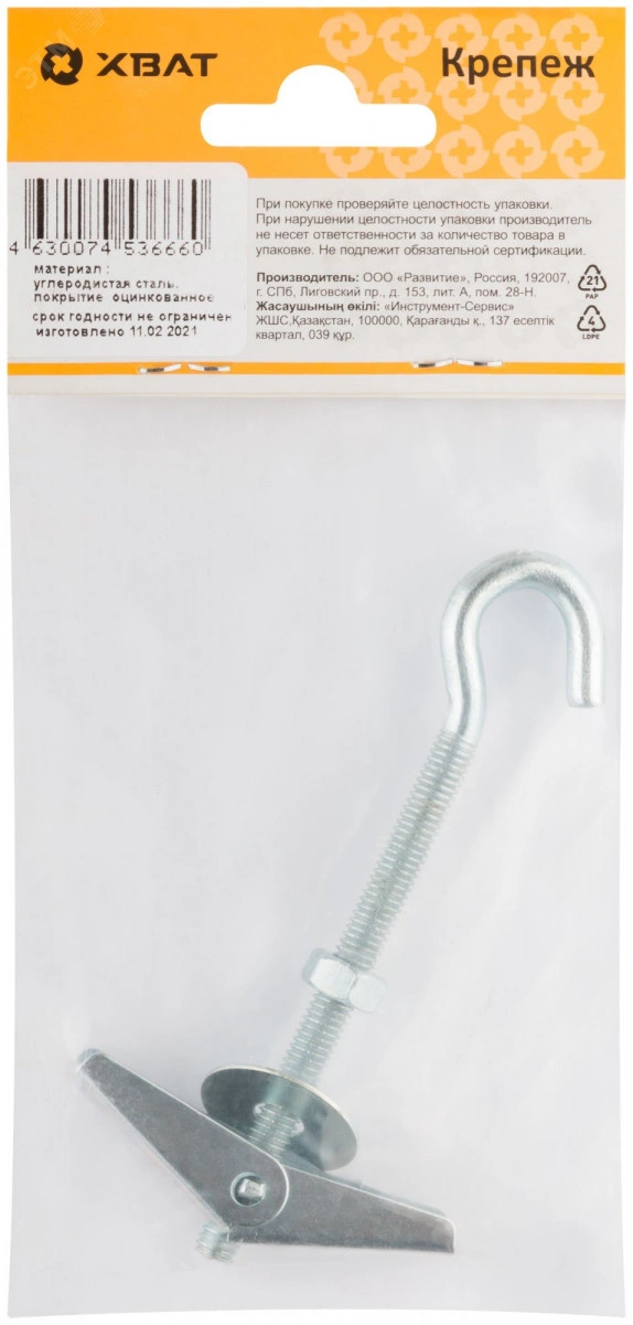 Дюбель изготовлен из углеродистой стали с антикоррозионным цинковым покрытием. Предназначен для крепления конструкций к пустотелым основаниям (гипсокартонные листы (ГКЛ), гипсоволокнистые листы (ГВЛ), пустотелые пенобетонные блоки, древесно-стружечные плиты (ДСП), древесноволокнистые плиты (ДВП), фанера).