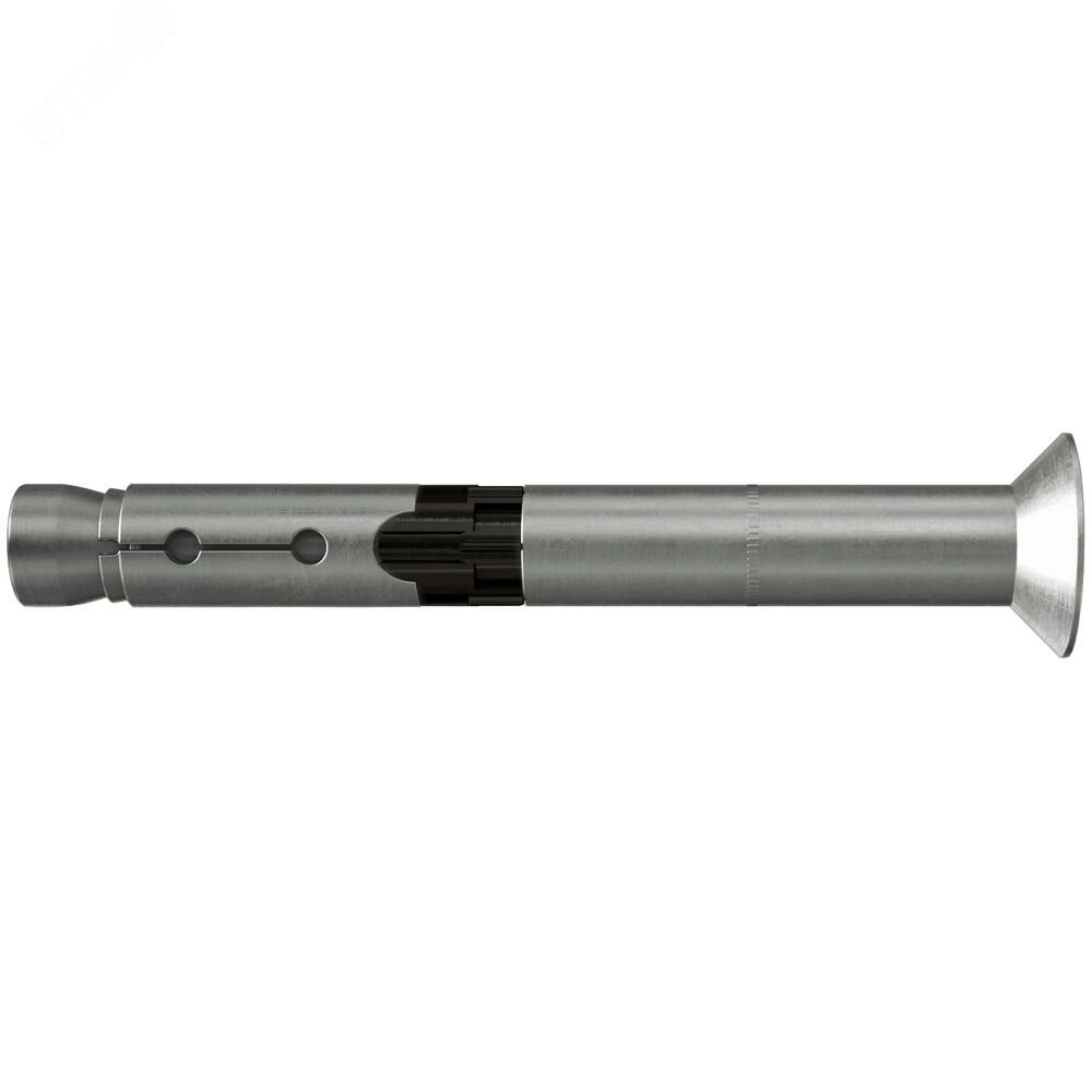 Для сквозного монтажа. Черное пластиковое кольцо предотвращает проворачивание анкера при затяжке и действует как зона смятия, воспринимающая проскальзывание под действием крутящего момента, благодаря чему закрепляемое изделие притягивается к материалу основания.