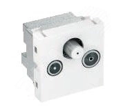 Розетка для антенн, БК и спутниковых приемников с разъемом для ТВ и радиоустройств. Частота: 5-2150 МГц Выводное затухание: 5-862 MHz - 1 дБ 950-2150 МГц - 2 дБ Затухание обратного канала: 14 дБ Класс защиты EMV - A