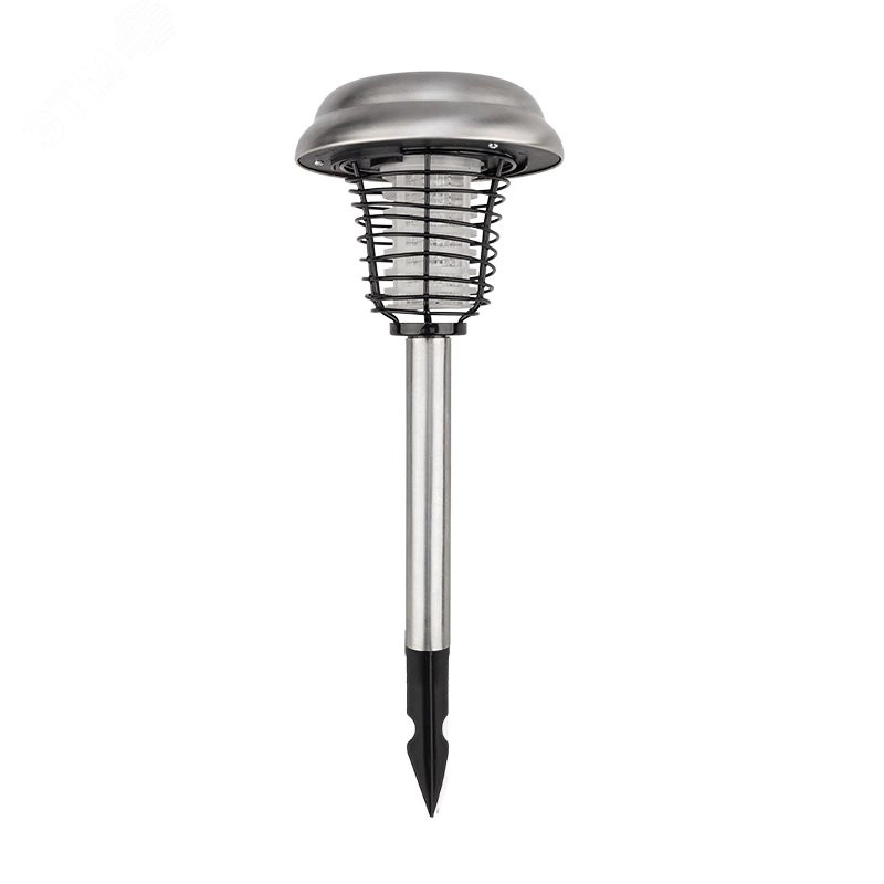 Антимоскитный садовый светильник сочетает сразу два устройства в одном - уничтожитель летающих насекомых и светильник для подсветки газонов, цветников и дорожек. Принцип действия электрического уничтожителя насекомых (комаров, мошкары) – основан на использовании ультрафиолетового излучения в специальном диапазоне (350-400 нм). Многие летающие насекомые весьма чувствительны к данному диапазону УФ-излучения и он привлекает их. Подлетая к лампе, насекомые замыкают собой прутья металлической решетки под напряжением и погибают от электрического разряда. Решетка защищена от случайного прикосновения, поэтому устройство безопасно для человека и домашних животных. Садовый светильник заряжается от солнечной панели на крышке и имеет встроенный аккумулятор, от которого работает ночью.