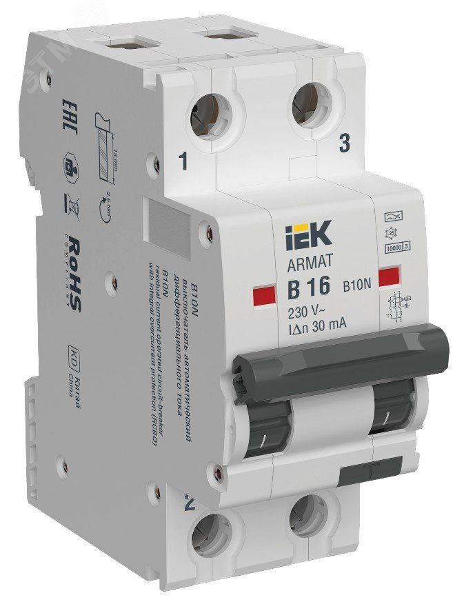 Полное описание: ARMAT Автоматический выключатель дифференциального тока B10N 2P B16 30мА тип A IEK