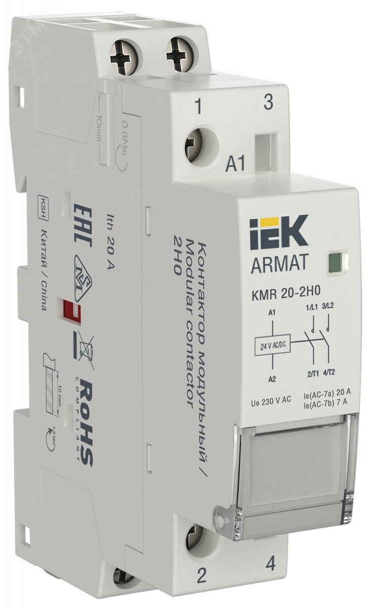ARMAT Контактор модульный KMR 20А 24В AC/DC 2НО IEK