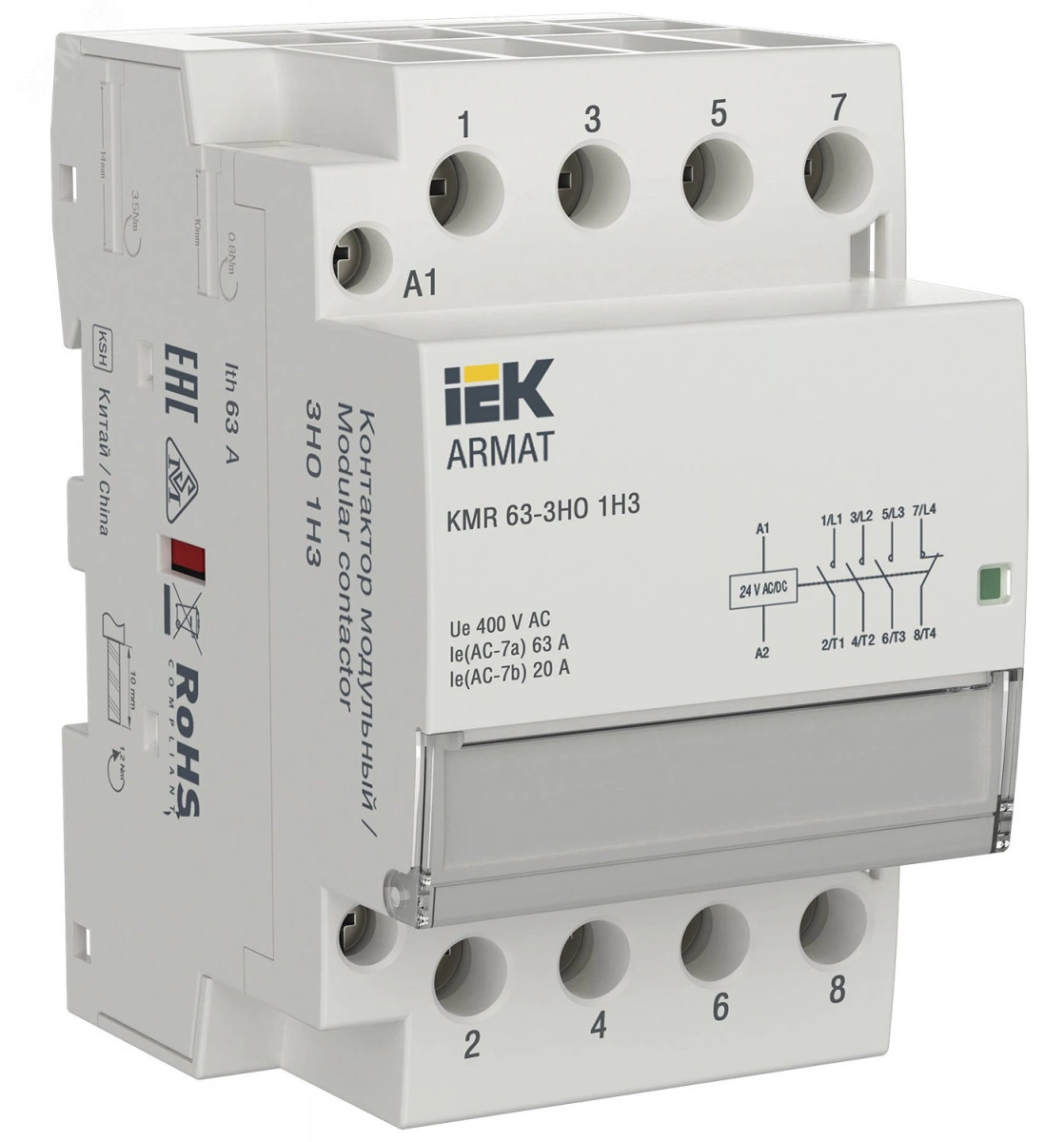 ARMAT Контактор модульный KMR 63А 24В AC/DC 3НО 1НЗ IEK