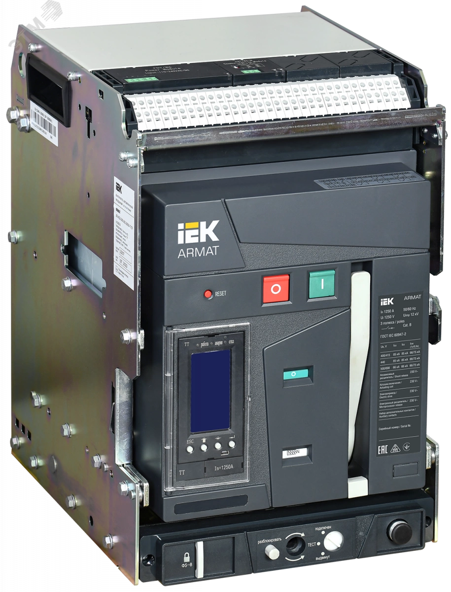 Полное описание: ARMAT Воздушный автоматический выключатель выдвижного исполнения 3P типоразмер B 85кА 1250А расцепитель TT с комплектом аксессуаров 220В: мотор привод катушка включения катушка отключения