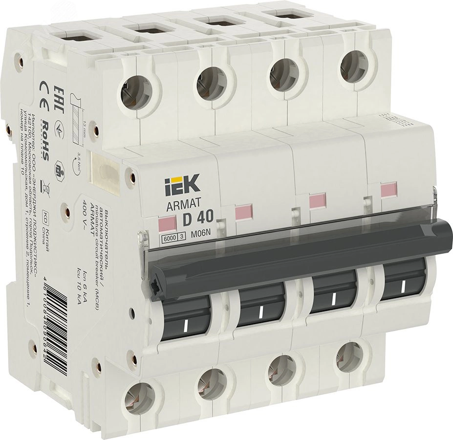 Автоматические выключатели ARMAT серии M06N предназначены для защиты цепей от перегрузки и короткого замыкания. Модельный ряд включает в себя устройства с характеристиками срабатывания B, C, D и номинальными токами от 0,5 до 63 А. Номинальная отключающая способность автоматических выключателей ARMAT серии M06N составляет 6 кА. Предельная отключающая способность варьируется в зависимости от номинала от 10 до 50 кА.