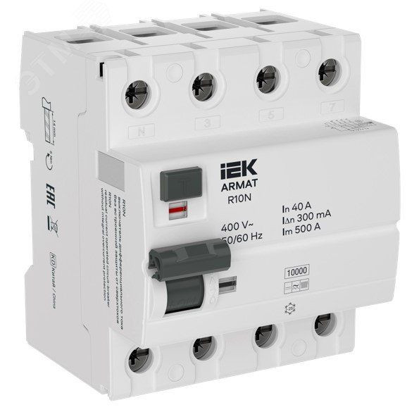 Выключатели дифференциального тока R10N типа B серии ARMAT предназначены для эксплуатации в однофазных или трёхфазных электрических сетях переменного тока напряжением до 400 В частотой 50/60 Гц. ВДТ типа В обеспечивают защиту от постоянной составляющей, переменной и пульсирующей составляющей и высокочастотной составляющей дифференциального тока. Дифференциальный ток с высокочастотной составляющей может возникать в оборудовании с преобразователями на полупроводниках. ВДТ с характеристиками срабатывания АС и А не могут обеспечить комплексную защиту в системах с преобразователями на полупроводниках, комплексная защита может быть обеспечена только с помощью ВДТ с характеристикой срабатывания типа В. Преобразователи на полупроводниках встречаются в медицинском оборудовании (различные виды томографов, рентгеновские аппараты и т.д.), зарядных станциях, фотоэлектрических преобразователях, источниках бесперебойного питания, преобразователях частоты.