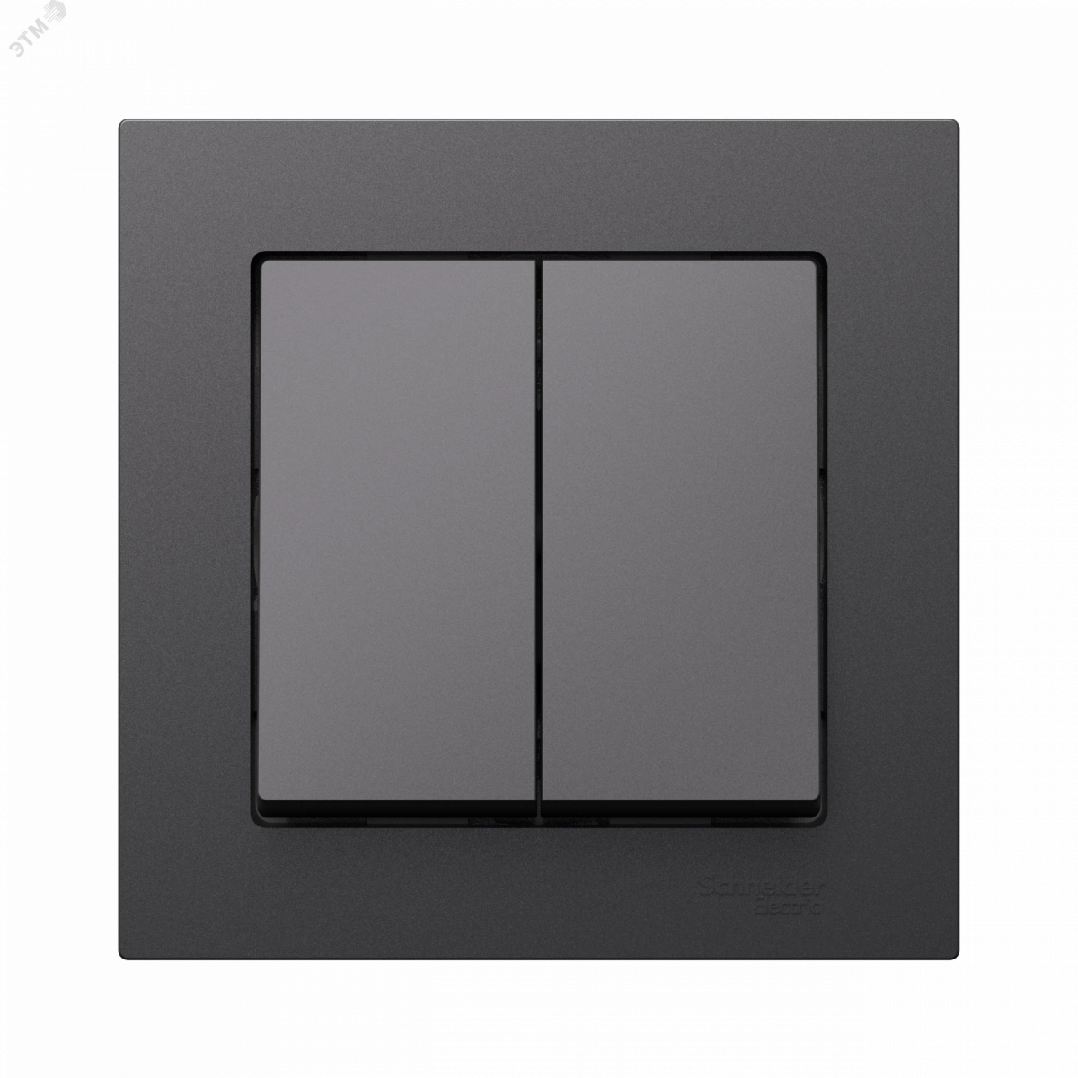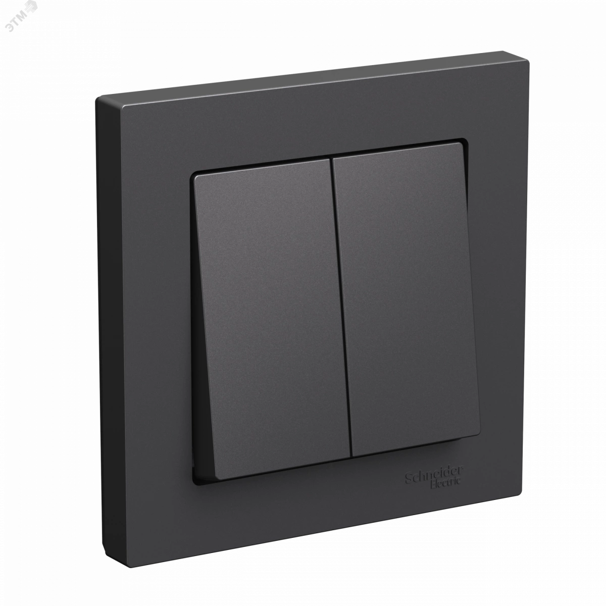 Выключатель Systeme Electric (ранее Schneider Electric) серии AtlasDesign (в сборе, цвет БАЗАЛЬТ) 2-клавишный подходит для сетей 250 В, на ток 10 А. Двухклавишный выключатель позволяет управлять двумя источниками света с одной точки. Лицевые детали из качественного ABS-пластика, устойчивого к царапинам и УФ-излучению. Изделие поставляется в комплекте с рамкой того же цвета. Усиленные прямые монтажные лапки для лучшей фиксации механизма в монтажной коробке.