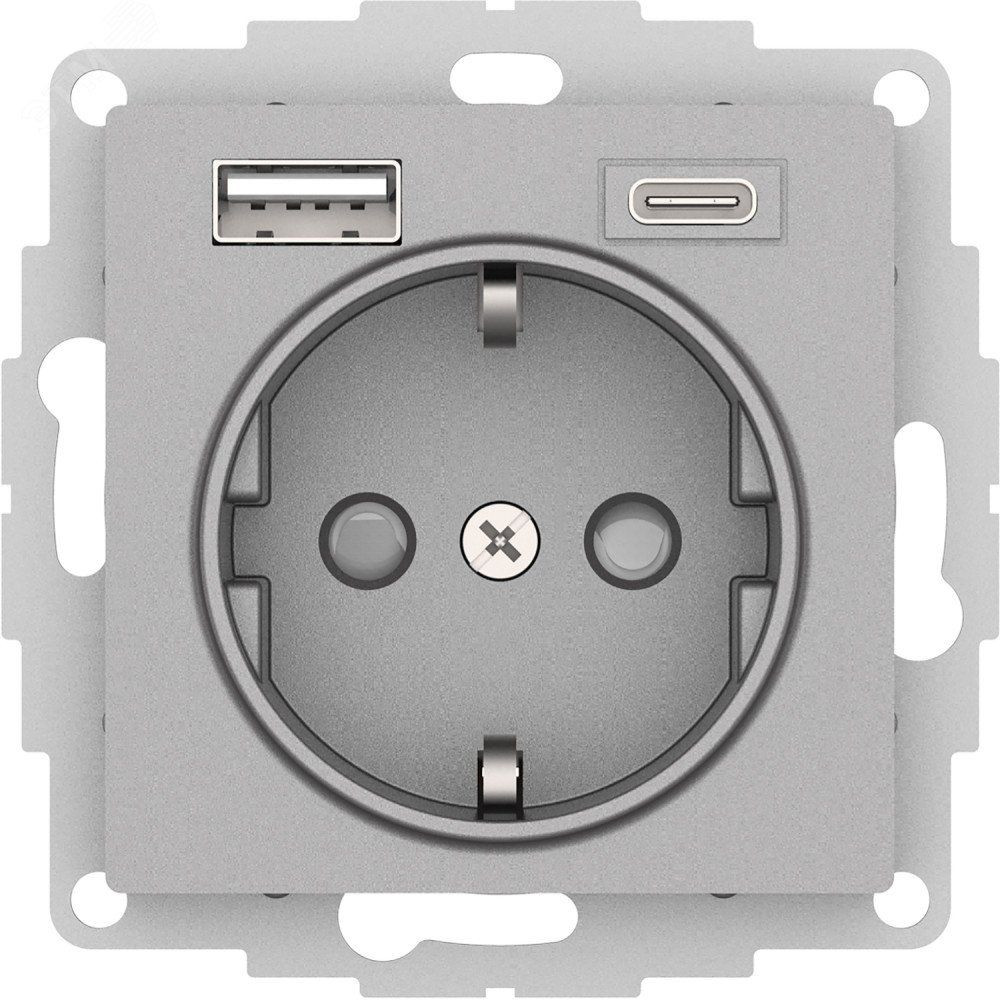 Розетка силовая Systeme Electric серии AtlasDesign 16А (цвет алюминий) с заземлением и шторками с розеткой USB, с двумя разъемами тип А и тип С. Розетка совмещает в себе сразу 3 функции в одном изделии. Удобное и современное решение для дома, офиса и других помещений. Лицевые детали из качественного ABS-пластика, устойчивого к царапинам и УФ-излучению. Заземляющий контакт обеспечивает дополнительную защиту от удара электрическим током. шторки обеспечивают дополнительную безопасность в доме, где находятся дети. Одно устройство позволяет как подключить бытовые приборы, так и зарядить мобильные устройства.