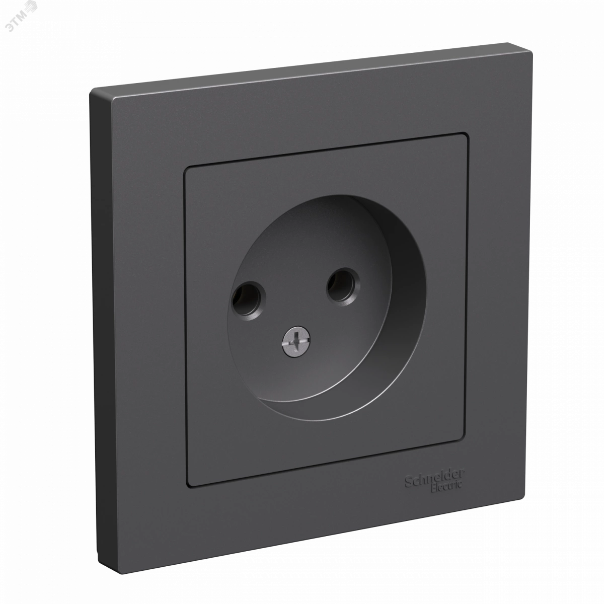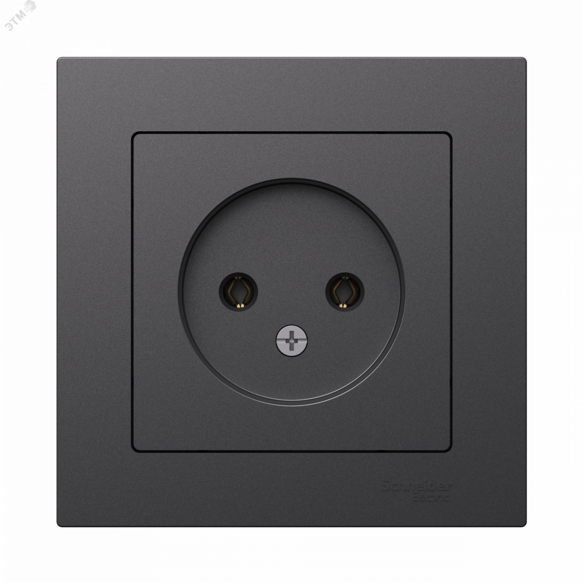 Розетка Systeme Electric (ранее Schneider Electric) серии AtlasDesign (в сборе, цвет БАЗАЛЬТ) одинарная без заземления и без шторок подходит для сетей 250 В, на ток 16 А. Лицевые детали из качественного ABS-пластика, устойчивого к царапинам и УФ-излучению. Изделие поставляется в комплекте с рамкой того же цвета. Усиленные прямые монтажные лапки для лучшей фиксации механизма в монтажной коробке.