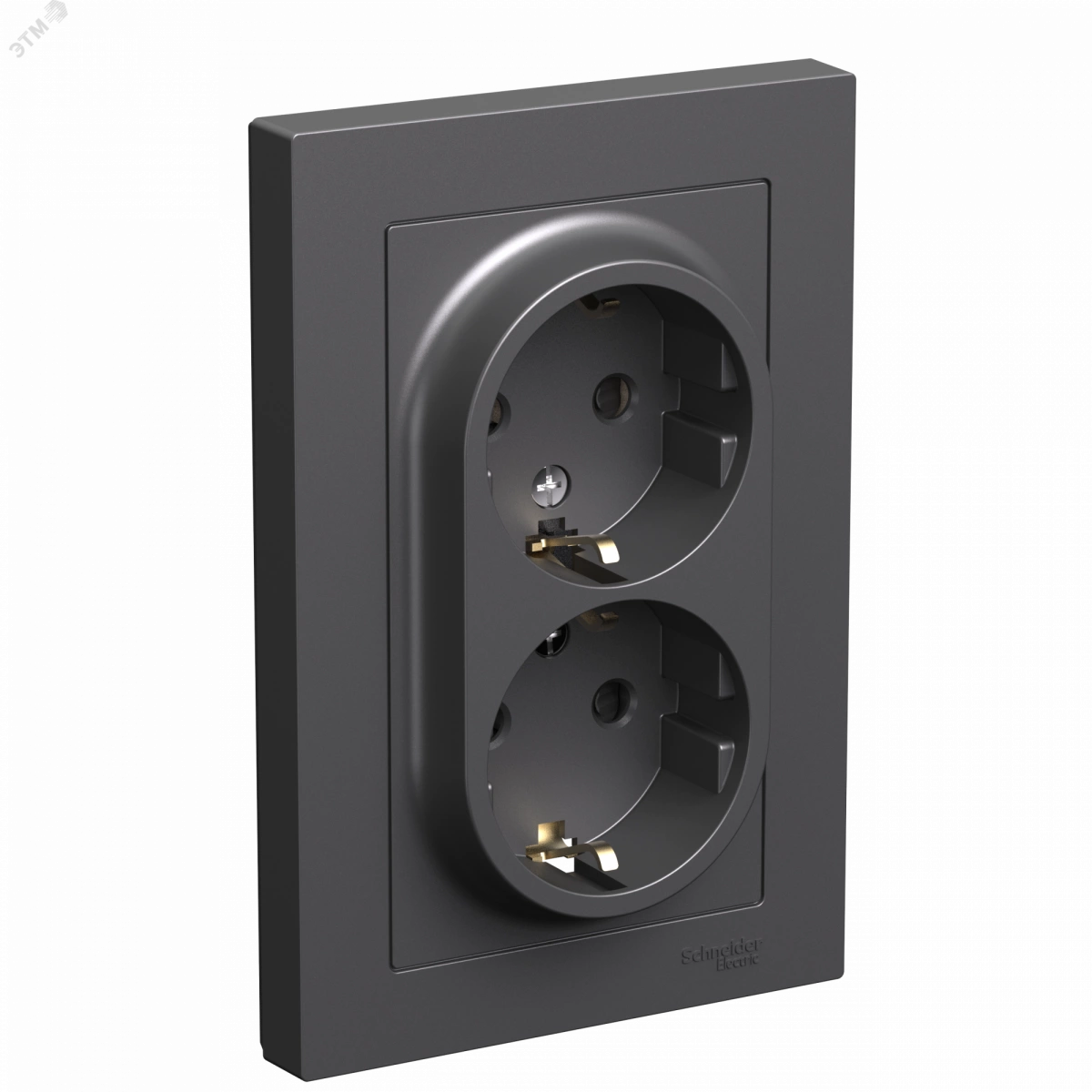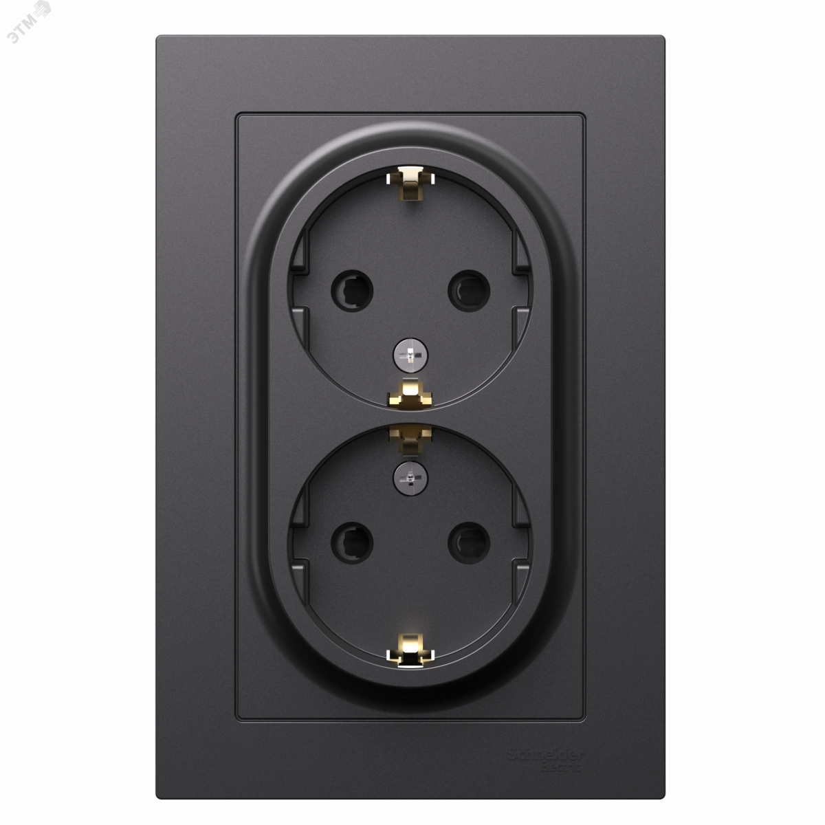 Розетка двойная Systeme Electric (ранее Schneider Electric) серии AtlasDesign (в сборе, цвет БАЗАЛЬТ) с заземлением и шторками подходит для сетей 250 В, на ток 16 А. Заземляющий контакт обеспечивает дополнительную защиту от удара электрическим током. Лицевые детали из качественного ABS-пластика, устойчивого к царапинам и УФ-излучению. Двойная розетка позволяет подключить два устройства в одном месте. Изделие поставляется в комплекте с рамкой того же цвета.