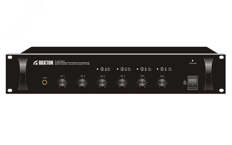 Предназначен для работы в IP системе ROXTON и используется для построения систем автоматического аварийного оповещения и музыкальной трансляции на базе дополнительного оборудования. Блок имеет 4 независимых линейных входа, 1 общий линейный вход, 1 микрофонный вход, 4 программируемые розетки, 2 общие розетки. Уровень линейных и микрофонных сигналов регулируются при помощи ручек на передней панели.