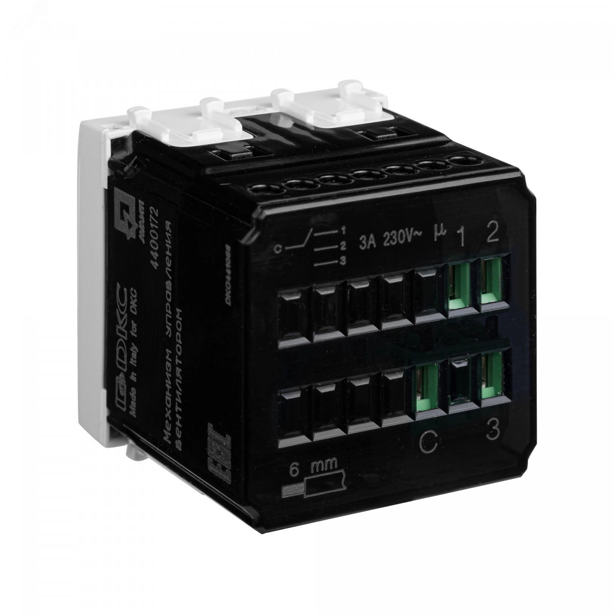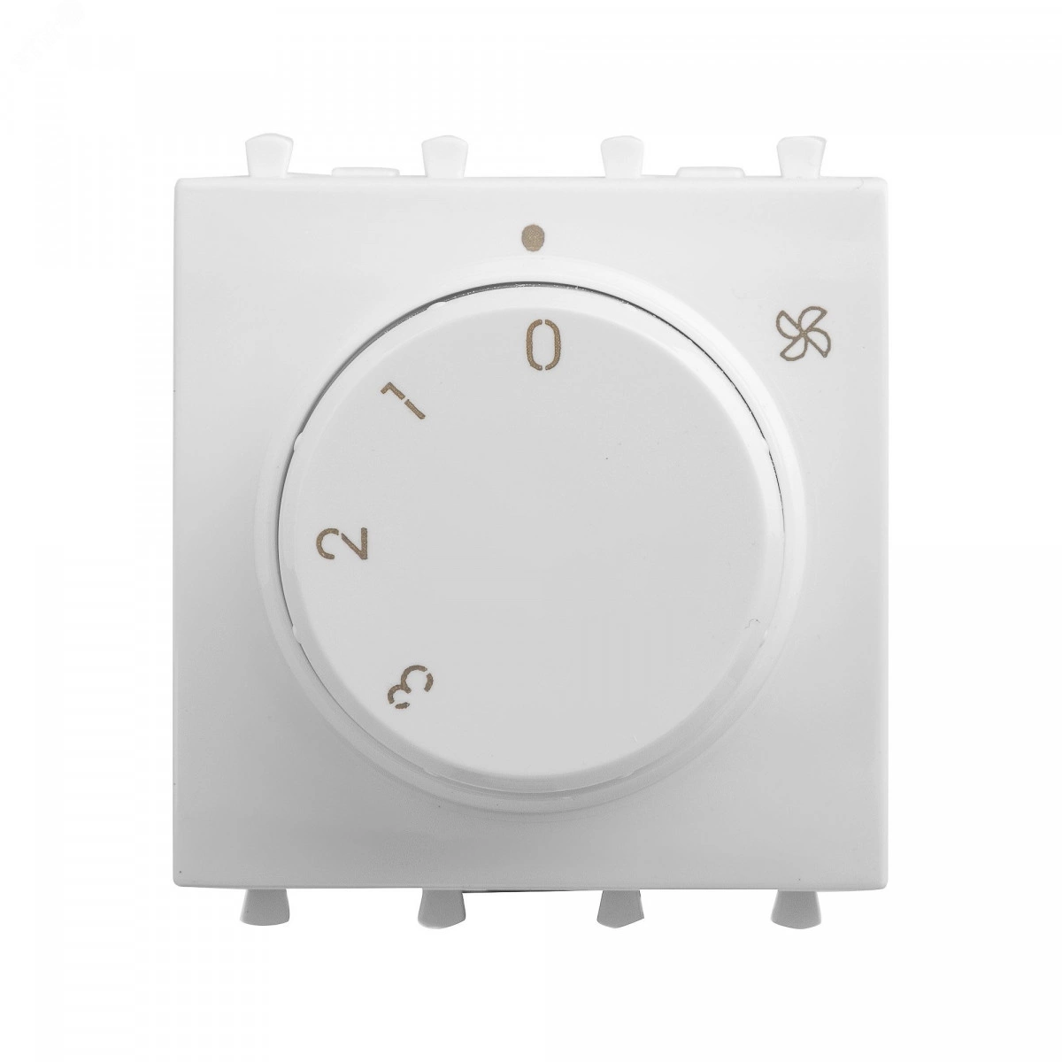 Механизм управления вентиляторами от ДКС встраивается в настенный кабель-канал и используется для изменения скорости вращения лопастей вентилятора. Конструкция предусматривает переключение по трем возможным скоростям и режим покоя. Изменение скорости производится поворотом колесика-регулятора. Номинальное напряжение ЭУИ – 230 В. Изделие имеет цвет 'Белое облако', оттенок с универсальной сочетаемостью, который подойдет к любому цветовому решению и стилю оформления интерьера.