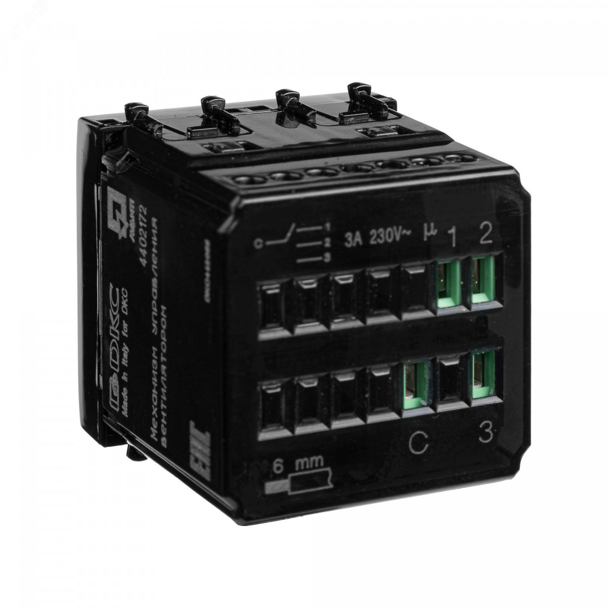 Механизм управления вентиляторами от ДКС встраивается в настенный кабель-канал и используется для изменения скорости вращения лопастей вентилятора. Конструкция предусматривает переключение по трем возможным скоростям и режим покоя. Изменение скорости производится поворотом колесика-регулятора. Номинальное напряжение ЭУИ – 230 В. Изделие имеет цвет 'Черный квадрат'. Это глубокий черный оттенок, придающий интерьеру утонченность и изысканность.