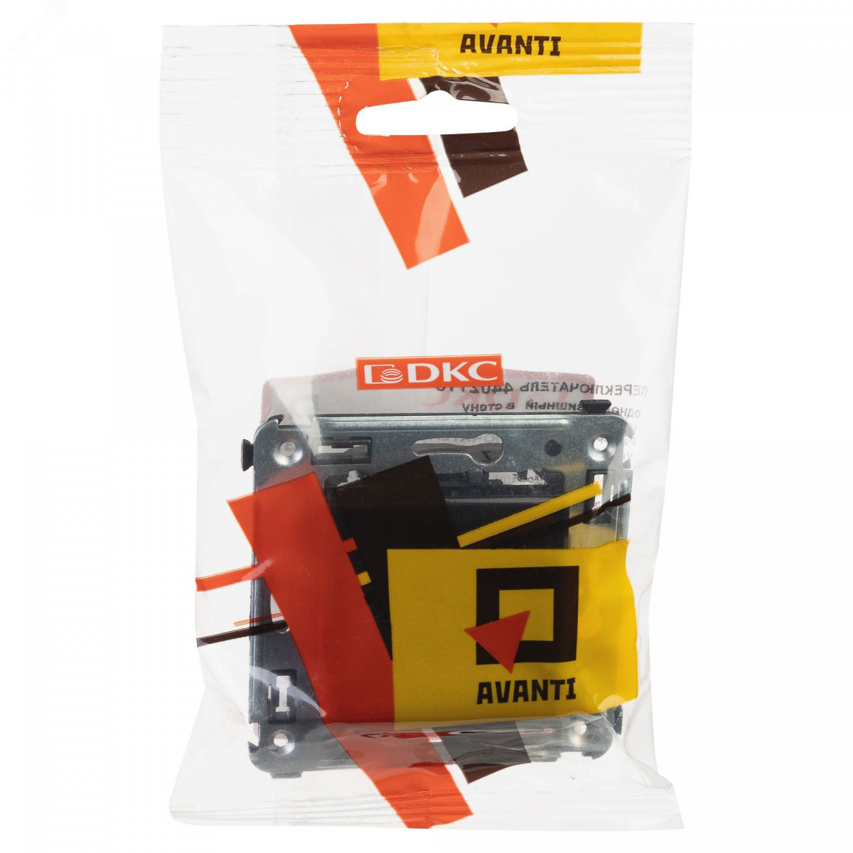 Задача переключателя – управление освещением из двух точек. Он позволяет включить/выключить свет из удобной точки – например, в спальне переключатель может размещаться возле кровати. Переключатель предназначен для скрытого монтажа в стену. Номинальное напряжение – 230 В, номинальный ток – 16 А. Пластиковые части электроустановочного изделия имеют цвет 'Черный квадрат'. Этот оттенок – жемчужина серии 'Avanti'. Загадочный, многозначный и глубокий, он несет в себе отпечаток идей русского авангарда.
