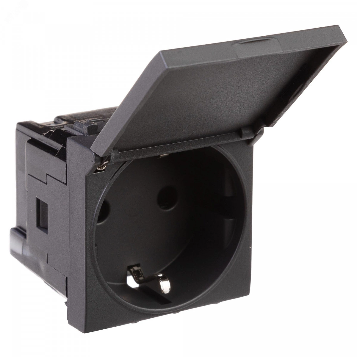 Avanti Розетка с крышкой модульная, 2P+E, с з/ш, , Черный матовый, 2 модуля