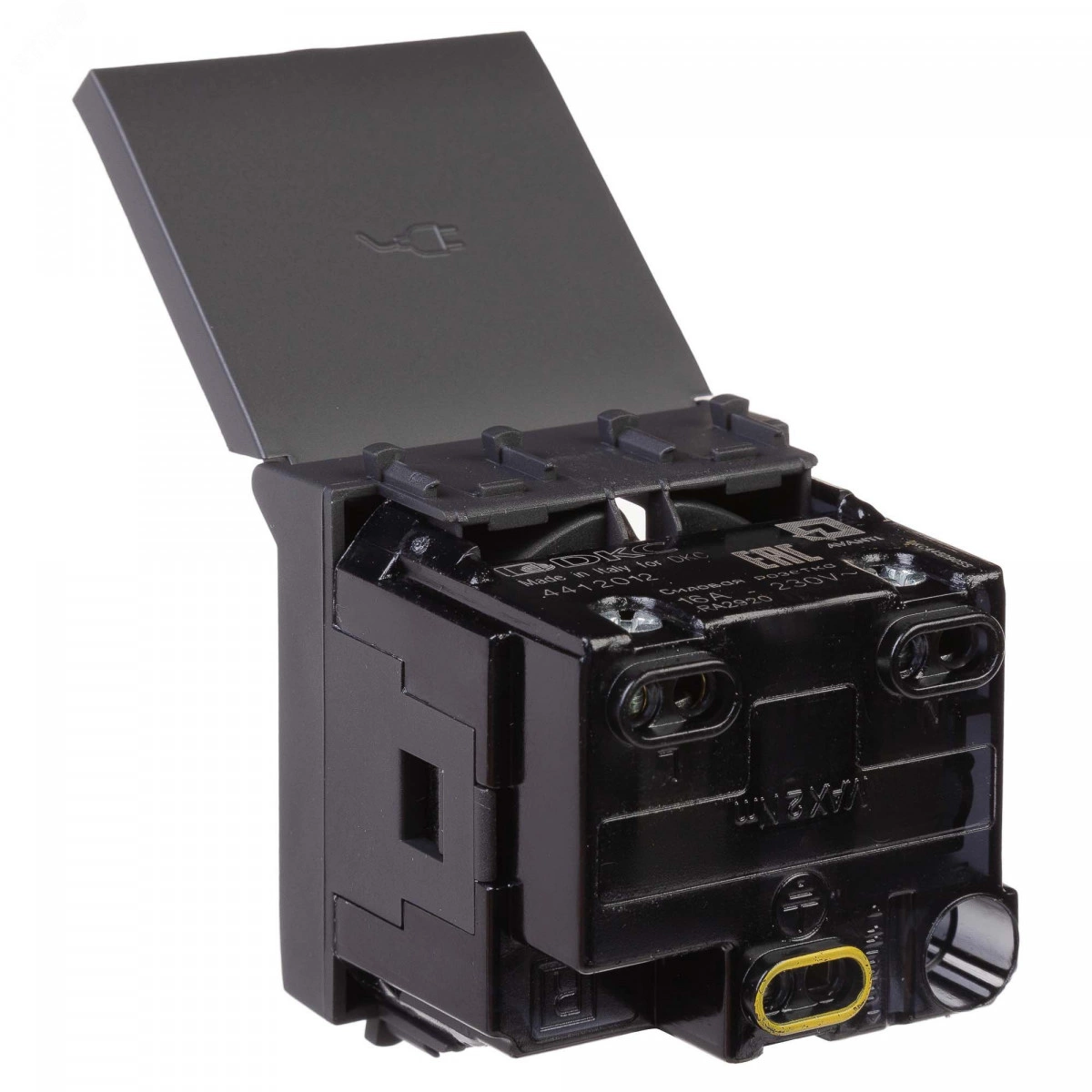 Розетка 2P+E (однофазная розетка с заземлением) модульная с крышкой от ДКС применяется для подключения различных электроприборов. Изделие предназначено для монтажа в системы 'In-liner Front' и 'In-liner Aero' при помощи рамок-суппортов и каркасов 'Avanti' (код 4400912 и т.д.). Лаконичные формы электроустановочных изделий 'Avanti' отлично сочетаются с глубокими цветами. Пластиковые части устройства имеют оттенок 'Черный матовый'. Это темный насыщенный цвет, который легко сочетается с любыми оттенками, придавая им оттенок богемной утонченности.
