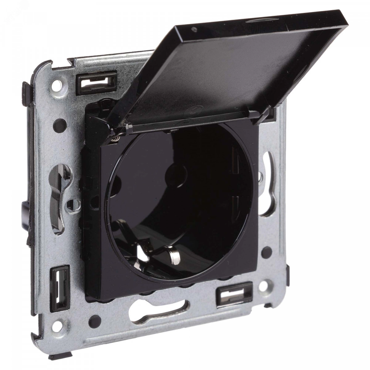 Розетка SCHUKO с крышкой, термопласт, черный      матовый