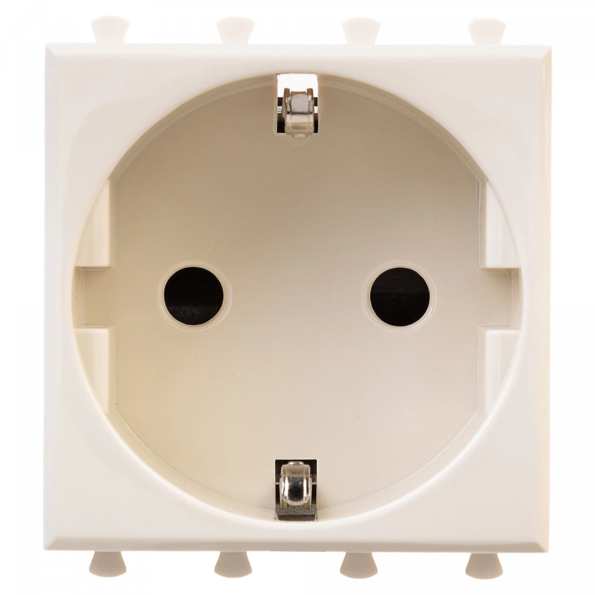 Розетка электрическая с заземлением, со шторками и возможностью установки подсветки, модульная. Предназначена для монтажа в системы 'In-liner Front' и 'In-liner Aero' при помощи рамок-суппортов и каркасов 'Avanti' (код 4400912 и т.д.). Используется для подключения оргтехники, бытовых приборов и т. д. Характеристики- диаметр отверстий для ввода кабелей – 3 мм (по 2 отверстия на одну клемму), винтовые зажимы, защитные шторки, шаблон для зачистки кабеля – 11 мм, номинальный ток – 16 A, номинальное напряжение – 230 В. Изделие устанавливается в подрозеточные коробки глубиной не менее 45 мм при помощи каркаса с лапками (код 4400802) и саморезов. 2 модуля. Цвет- 'Белое облако'.