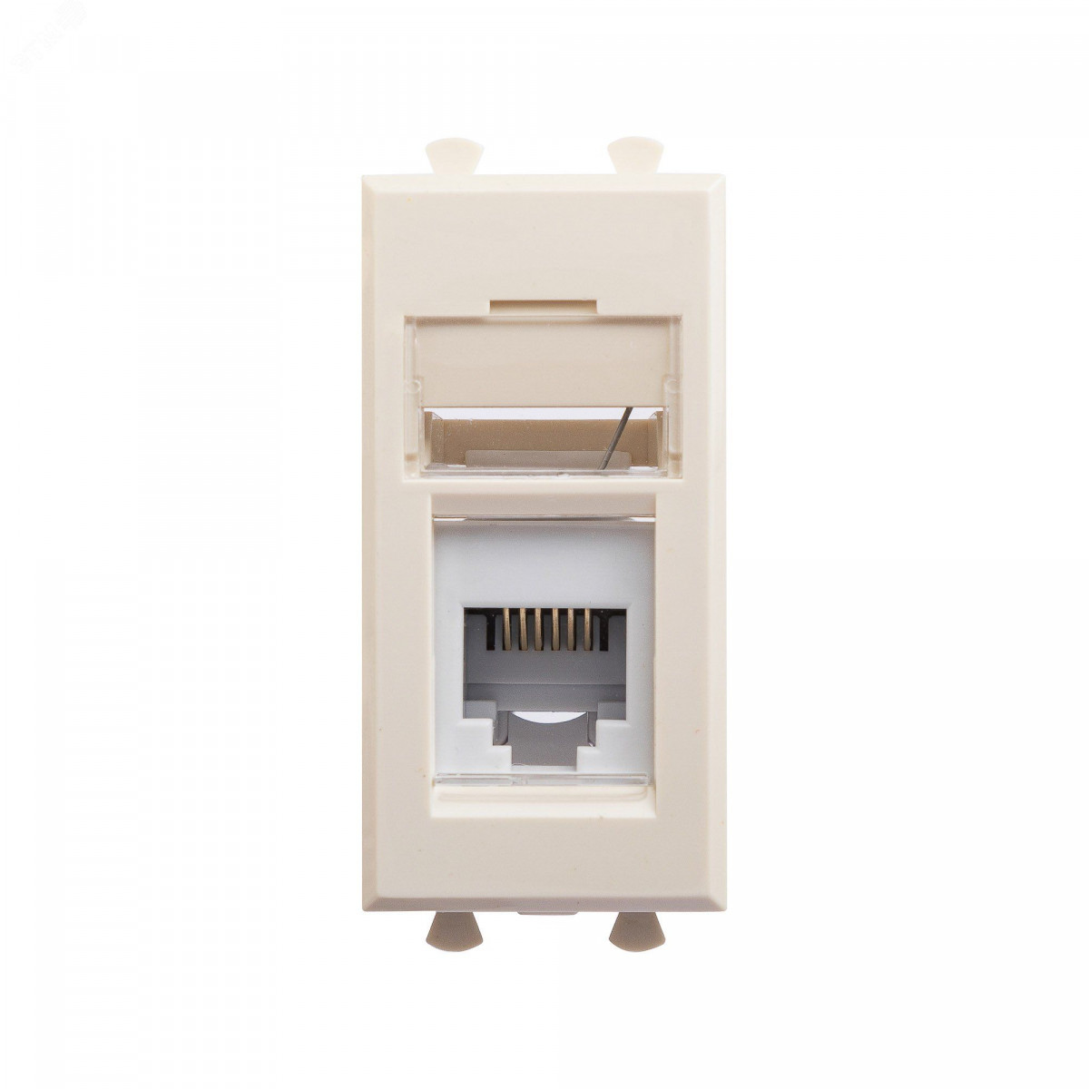 Телефонная розетка RJ-12 модульная. Предназначена для монтажа в систему кабельных коробов ''In-liner Front'' и систему организации рабочих мест ''Sotto'' при помощи рамок-суппортов и каркасов ''Avanti'' (код 4400912 и т.д.). Используется для подключение телефонного кабеля к рабочему месту. 6P6C. С пылезащитной шторкой, с маркировочной табличкой. В комплекте разъем Keystone. Для заделки контактов используется инструмент типа 110. Фиксация в подрозеточные коробки глубиной не менее 45 мм при помощи каркаса с лапками (код 4400802) и саморезов. 1 модуль. Цвет: ''Ванильная дымка''