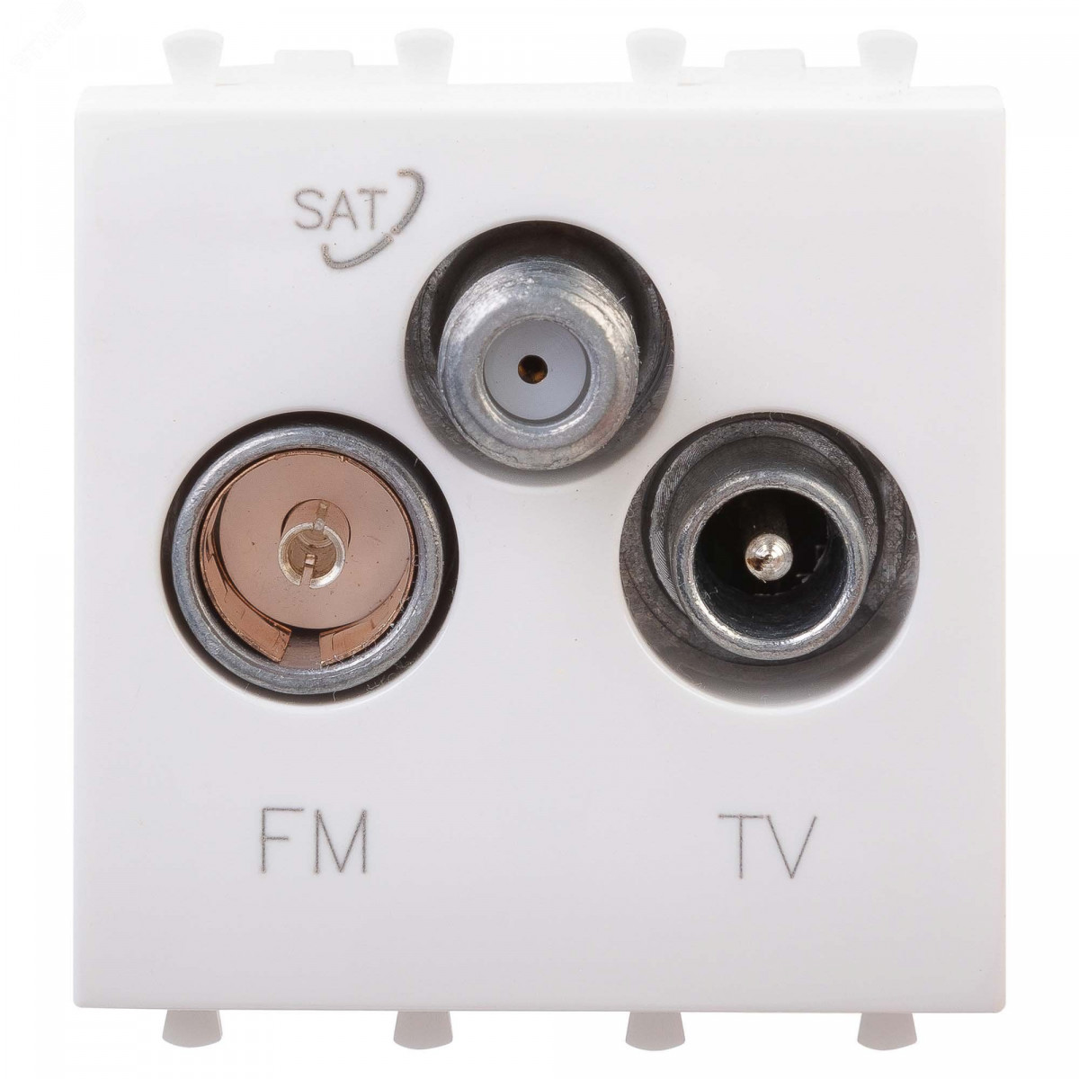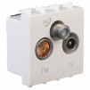 Розетка TV-FM-SAT модульная. Назначение- для монтажа в системы 'In-liner Front' и 'In-liner Aero' при помощи рамок-суппортов и каркасов 'Avanti' (код 4400912 и т.д.), подключения телевизионного и радиокабеля. Характеристики- винтовые зажимы, диапазон рабочих частот 4–2400 МГц, затухание
