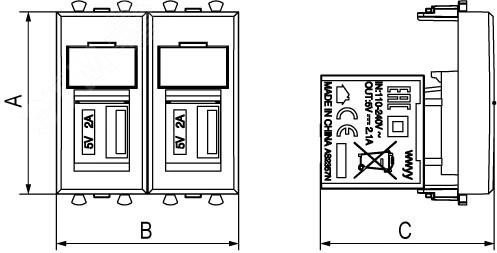 Avanti USB зарядное устройство ''Ванильная дымка'', 2.1А, 2 модульная