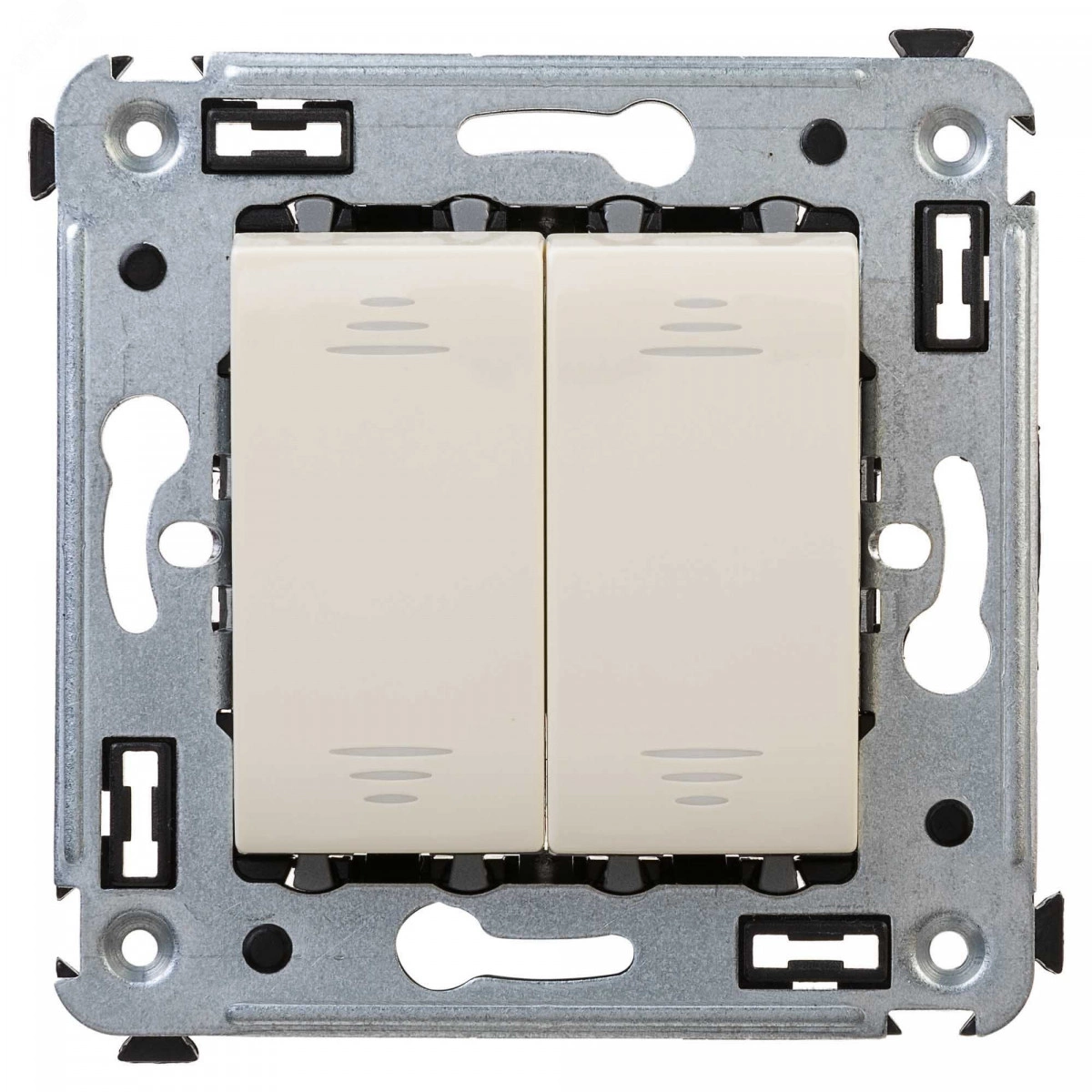 Двухклавишный выключатель ДКС применяется для того, чтобы из одной точки управлять двумя контурами освещения. Выключатель предназначен для скрытого монтажа в стену, номинальное напряжение – 230 В, номинальный ток – 16 А. Материал- металл, термопласт. Пластиковые элементы изделия имеют цвет 'Ванильная дымка' – светлый оттенок из пастельной цветовой гаммы, нежный и умиротворяющий. Он отлично сочетается с теплыми цветами. Количество модулей у устройства – 2.