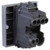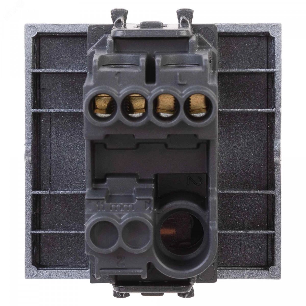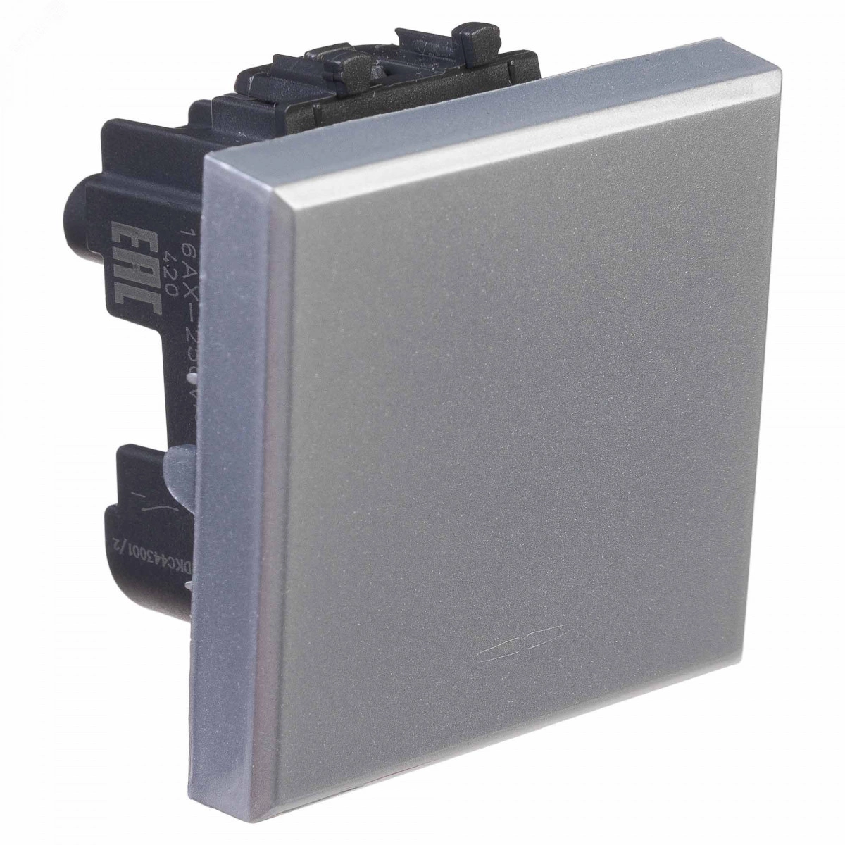 Выключатель одноклавишный однополюсный, модульный. Предназначен для монтажа в системы 'In-liner Front' и 'In-liner Aero' при помощи рамок-суппортов и каркасов 'Avanti' (код 4400912 и т.д.), используется для включения/выключения освещения. Характеристики- диаметр отверстий для ввода кабелей – 3 мм (по 2 отверстия на одну клемму), винтовые зажимы, шаблон для зачистки кабеля – 11 мм, номинальный ток – 16 A, номинальное напряжение – 230 В, возможна фиксация в подрозеточные коробки при помощи каркаса с лапками (код 4400802) и саморезов. 2 модуля. Цвет- 'Закаленная сталь'.