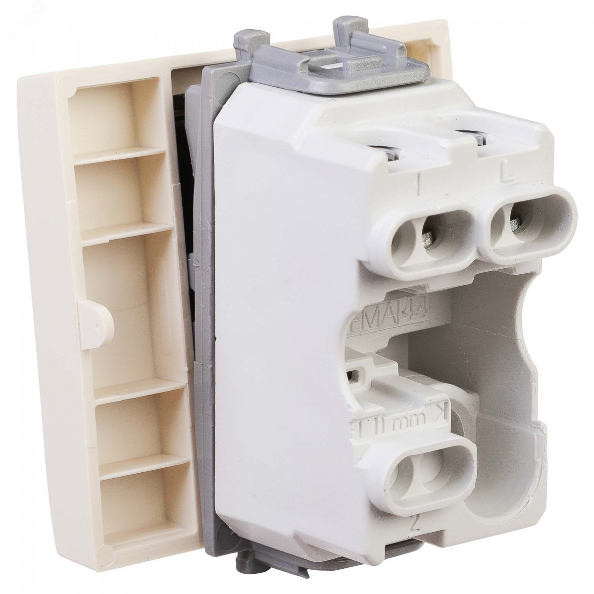 Выключатель одноклавишный однополюсный, модульный. Предназначен для монтажа в систему кабельных коробов ''In-liner Front'' и систему организации рабочих мест ''Sotto'' (алюминиевые кабель-каналы, колонны, башенки и лючки) при помощи рамок-суппортов и каркасов ''Avanti'' (код 4400912 и т.д.), Используется для включения/выключения освещения. Характеристики: диаметр отверстий для ввода кабелей – 3 мм (по 2 отверстия на одну клемму), винтовые зажимы, шаблон для зачистки кабеля – 11 мм, номинальный ток – 16 A, номинальное напряжение – 230 В, возможна фиксация в подрозеточные коробки при помощи каркаса с лапками (код 4400802) и саморезов. 2 модуля. Цвет: ''Ванильная дымка''. Производитель оставляет за собой право вносить во внешний вид изделия изменения, которые не влияют на его функционал, безопасность и надежность.