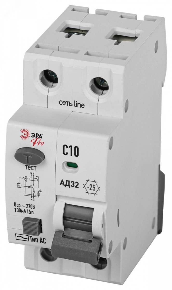 АВДТ 4,5кА PRO D32E2C10АC100P АД-32 электронное 1P+N C10 100мА тип АC защита 230В