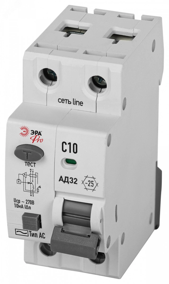 АВДТ 4,5кА PRO D32E2C10АC10P АД-32 электронное 1P+N C10 10мА тип АC защита 230В
