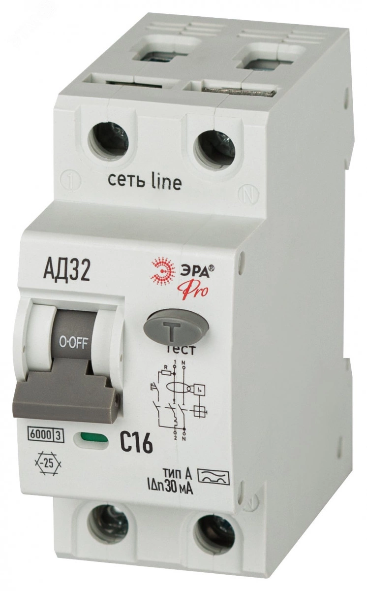 АВДТ электромеханическое 6кА D326M2C16А30 АД-32 1P+N C16 30мА тип А ЭРА PRO