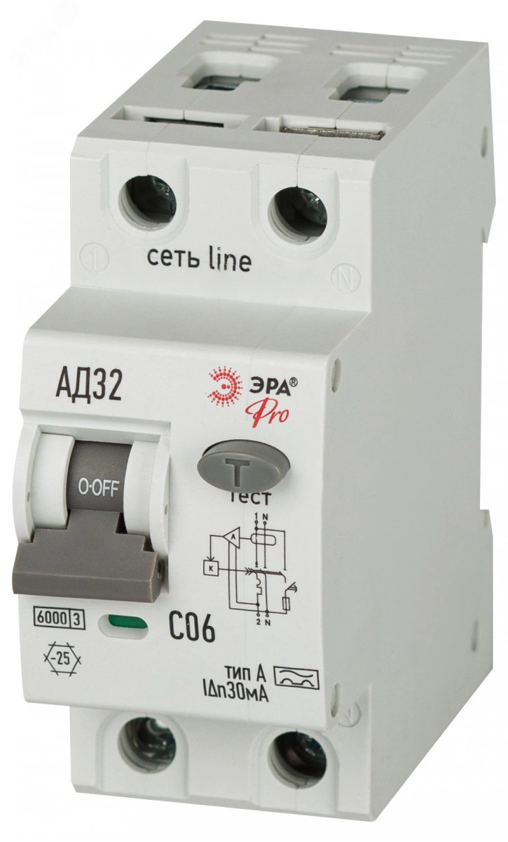 АВДТ электронное 6кА D326E2C06А30 АД-32 1P+N C06 30мА тип А ЭРА PRO