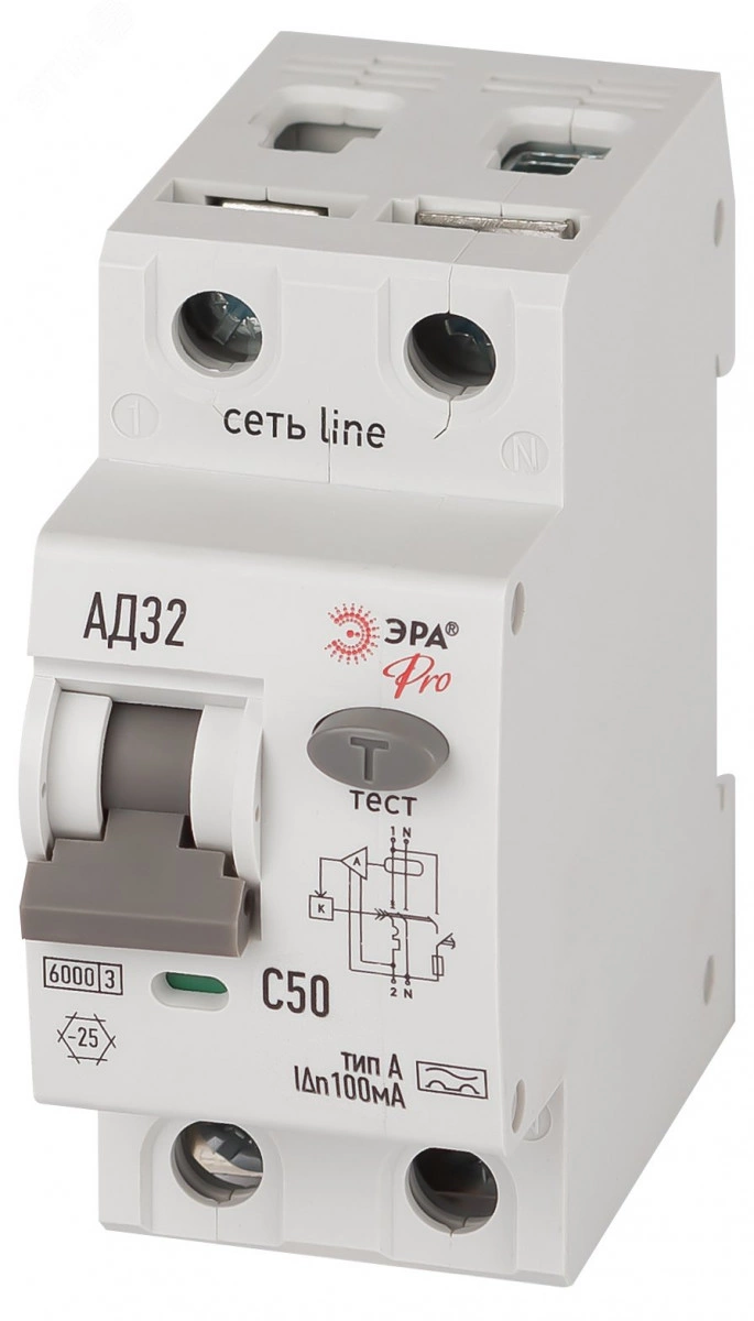 АВДТ электронное 6кА D326E2C50A100 АД-32 1P+N C50 100мА тип A ЭРА PRO
