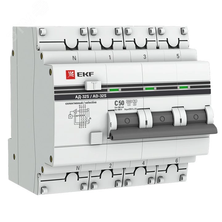 Автомат дифференциальный АД-32 (селективный) 3P+N 50А/300мА PROxima
