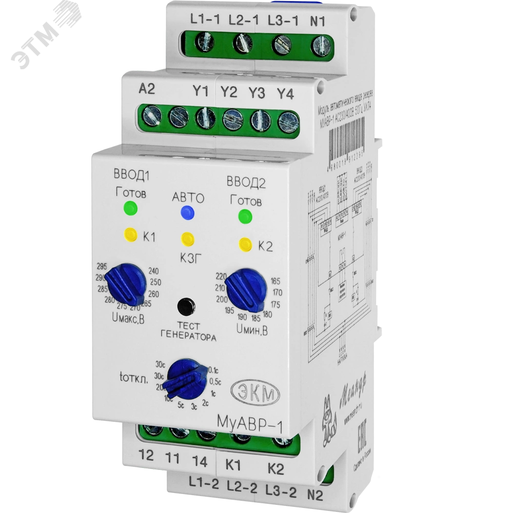 Модуль управления автоматического ввода резерва МуАВР-1 (далее Устройство) предназначен для автоматического переключения нагрузки на резервную линию, при отключении или возникновении аварийных ситуаций на основной рабочей линии. Устройство предназначено для использования в системах электроснабжения в однофазных и трехфазных четырехпроводных сетях (трехфазных сетях с нейтралью) для обеспечения энергоснабжения I и II категории подключения.