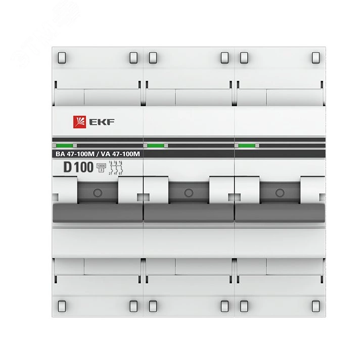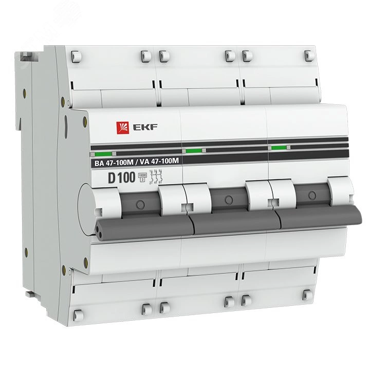 Автоматические выключатели ВА 47-100М с электромагнитным расцепителем 10кА EKF PROxima являются механическими коммутационными аппаратами, производятся в одно-,двух-, трех- и четырехполюсном исполнении и соответствуют ГОСТ IEC 60898-1. Выключатели данной серии оснащены электромагнитным расцепителем защиты от короткого замыкания. Тепловой расцепитель защиты от перегрузки отсутствует. Особенностью данной серии выключателей является усовершенствованная конструкция. В выключателях имеются пластиковые крышки, закрывающие доступ к винтовому зажиму и служащие для опломбирования выключателей, что исключает несанкционированный доступ к проводникам. Корпус выключателей усилен дополнительными заклепками для устранения эффекта расхождения корпуса. Двухпозиционная защелка обеспечивает удобную установку автоматического выключателя на DIN-рейку. Возможна коммутация алюминиевым и медным проводником.