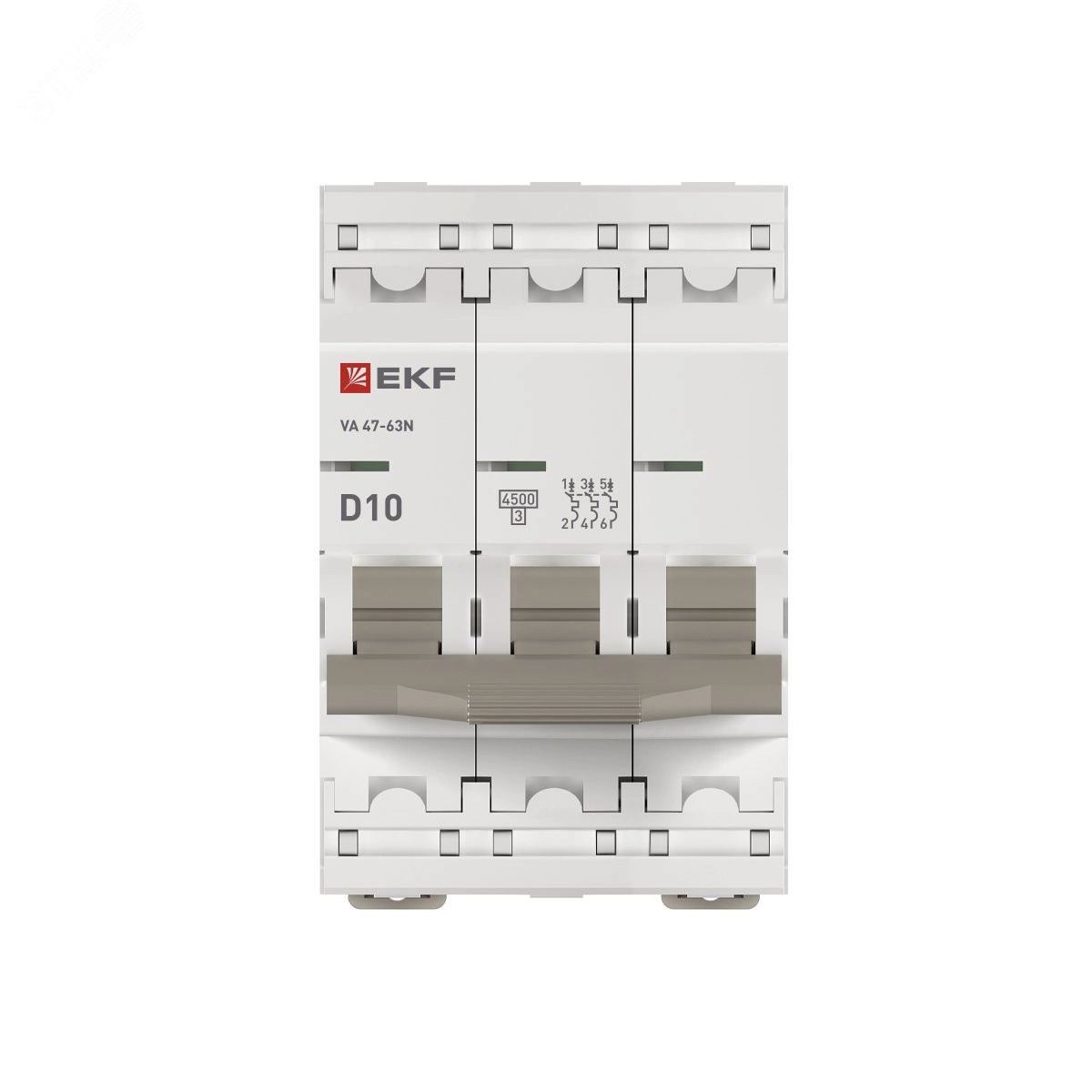 Автоматический выключатель 3P 10А (D) 4,5kA ВА 47-63N EKF PROxima