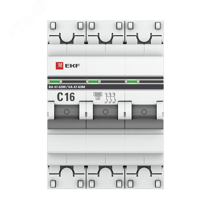 Автоматический выключатель 3P 16А (C) 6кА ВА 47-63M c электромагнитным расцепителем PROxima