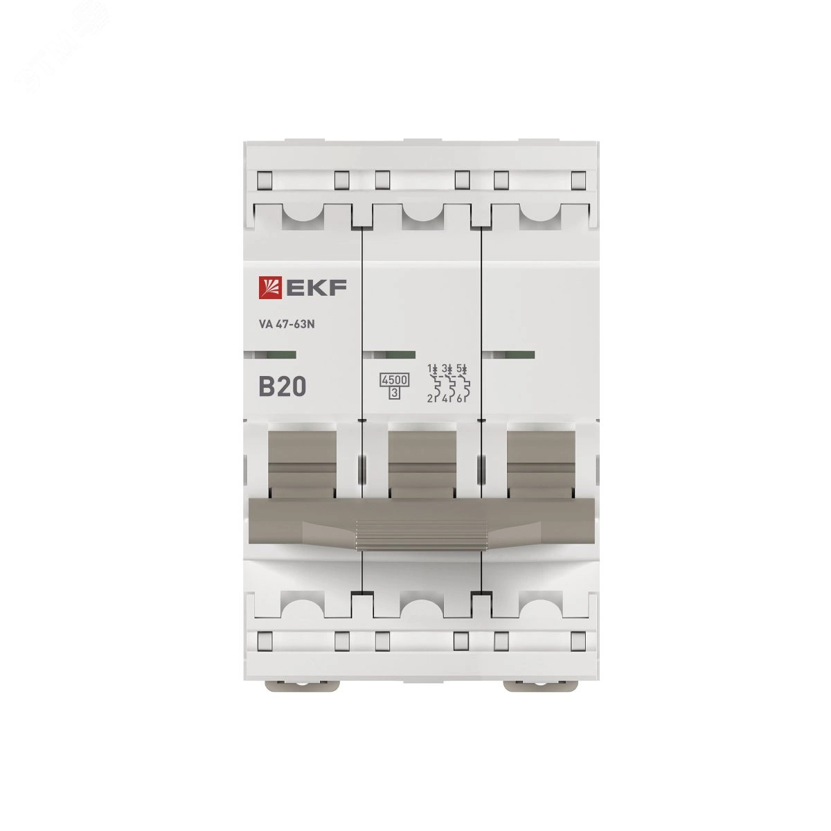 Автоматический выключатель 3P 20А (B) 4,5kA ВА 47-63N EKF PROxima