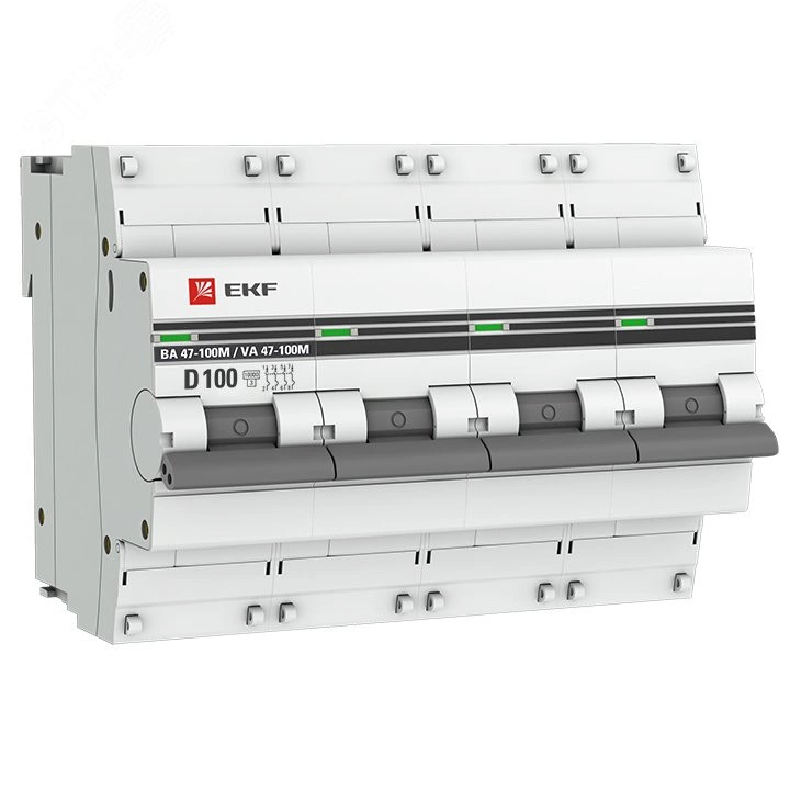 Автоматические выключатели ВА 47-100М с электромагнитным расцепителем 10кА EKF PROxima являются механическими коммутационными аппаратами, производятся в одно-,двух-, трех- и четырехполюсном исполнении и соответствуют ГОСТ IEC 60898-1. Выключатели данной серии оснащены электромагнитным расцепителем защиты от короткого замыкания. Тепловой расцепитель защиты от перегрузки отсутствует. Особенностью данной серии выключателей является усовершенствованная конструкция. В выключателях имеются пластиковые крышки, закрывающие доступ к винтовому зажиму и служащие для опломбирования выключателей, что исключает несанкционированный доступ к проводникам. Корпус выключателей усилен дополнительными заклепками для устранения эффекта расхождения корпуса. Двухпозиционная защелка обеспечивает удобную установку автоматического выключателя на DIN-рейку. Возможна коммутация алюминиевым и медным проводником.