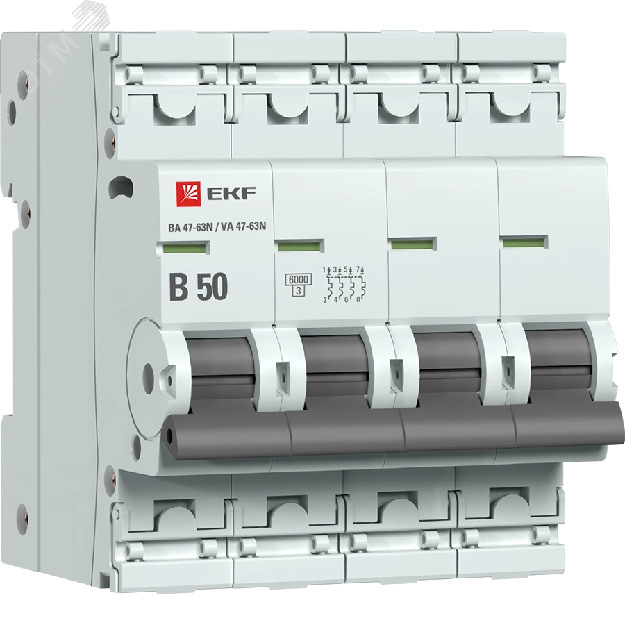Автоматический выключатель 4P 50А (B) 6кА ВА 47-63N EKF PROxima