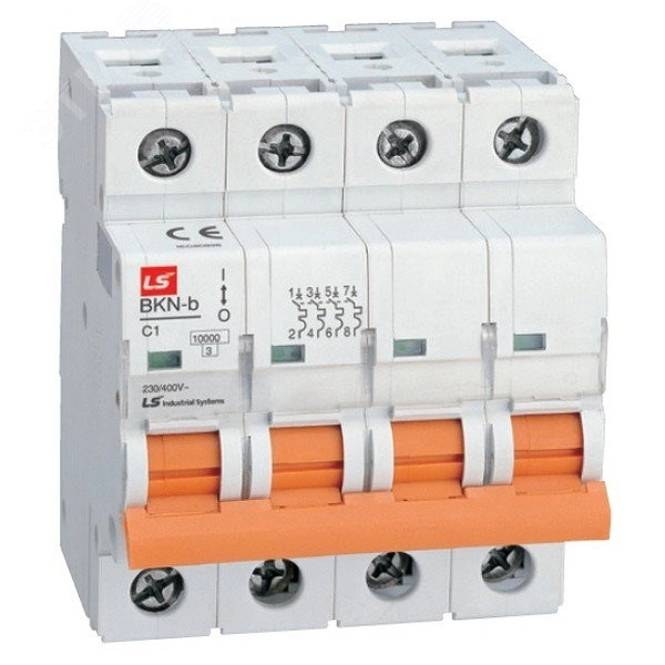 Модульный четырехполюсный автоматический выключатель BKN-b номиналом 6 A с характеристикой расцепителя ''D'' и отключающей способностью 10 кА предназначен для применения в электрических цепях напряжением до 400 В переменного тока частоты 50 Гц, их защиты при перегрузках и коротких замыканиях, проведения тока в нормальном режиме и оперативного включения и отключения указанных цепей. К выключателю могут присоединяться независимый расцепитель в от­дельном модуле и вспомогательные контакты в отдельном модуле. Независимый расцепитель и вспомогательные контакты заказываются отдельно и устанавливаются на выключатели потребителем по мере необходимости.