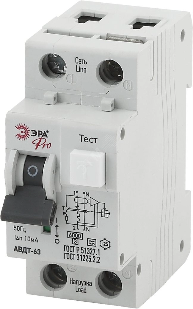 Автоматический выключатель дифференциального тока Pro NO-902-10 АВДТ 63 (А) B16 10mA 6кА 1P+N ЭРА