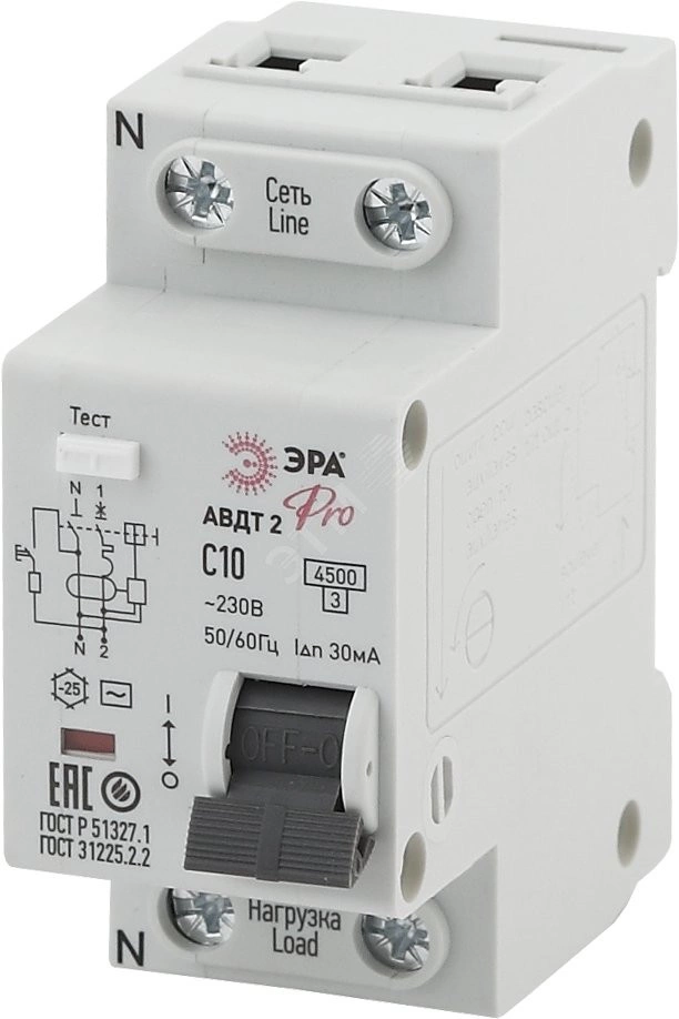Автоматический выключатель дифференциального тока Pro NO-902-138 АВДТ2 (AC) C32 30mA 6кА 1P+N ЭРА