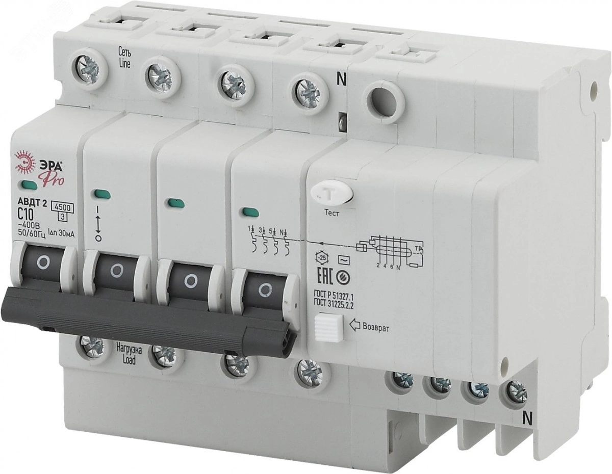 Автоматический выключатель дифференциального тока - автоматические выключатели дифференциального тока АВДТ предназначены для защиты человека от поражения электрическим током при повреждении изоляции электроустановок, для предотвращения пожаров вследствие протекания токов утечки на землю и для защиты от перегрузки и короткого замыкания. Рекомендуются для защиты групповых линий, питающих розетки наружной установки, розеток и освещения подвалов и гаражей.